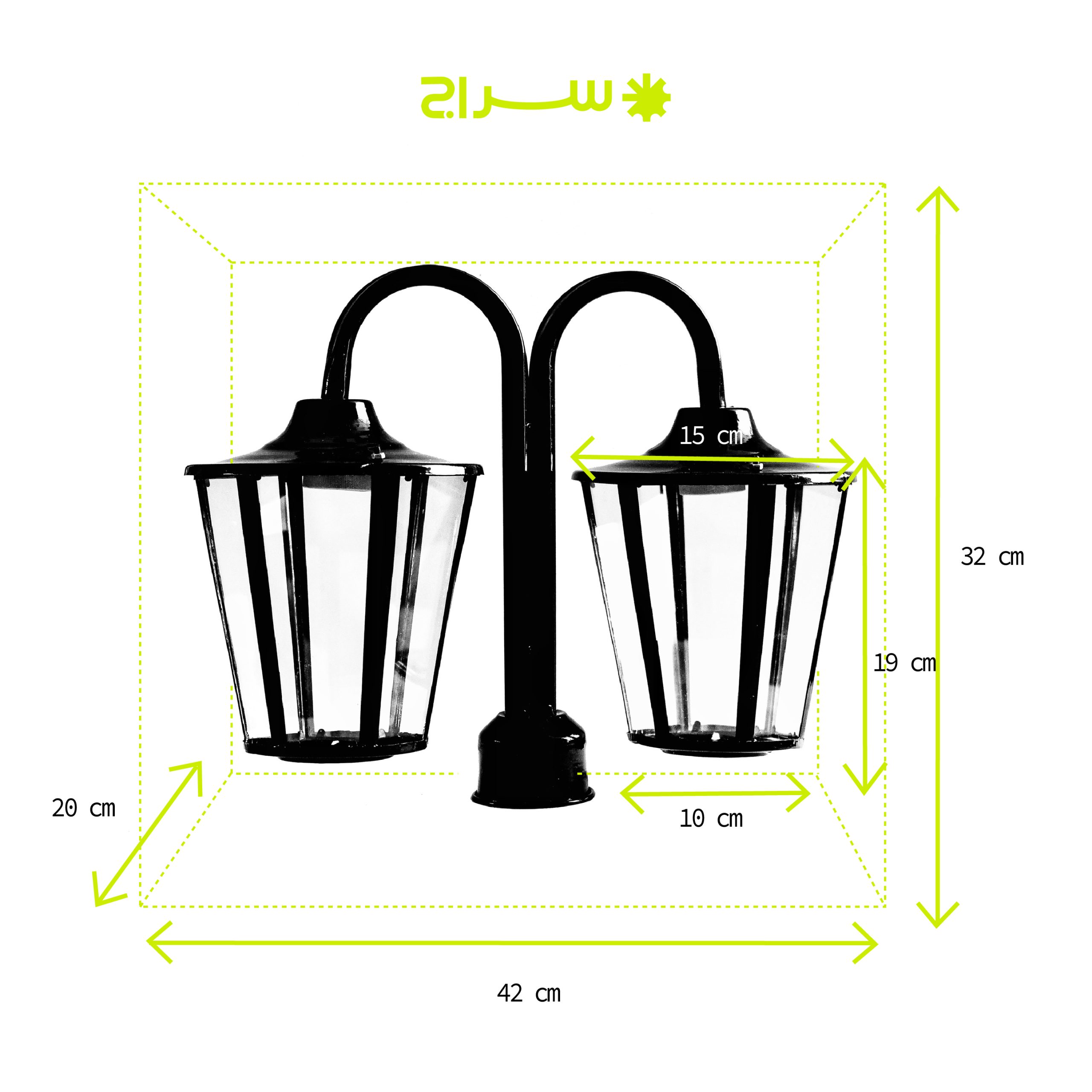 چراغ حیاطی و پارکی سرلوله دوشاخه فلزی مدل P-2SH