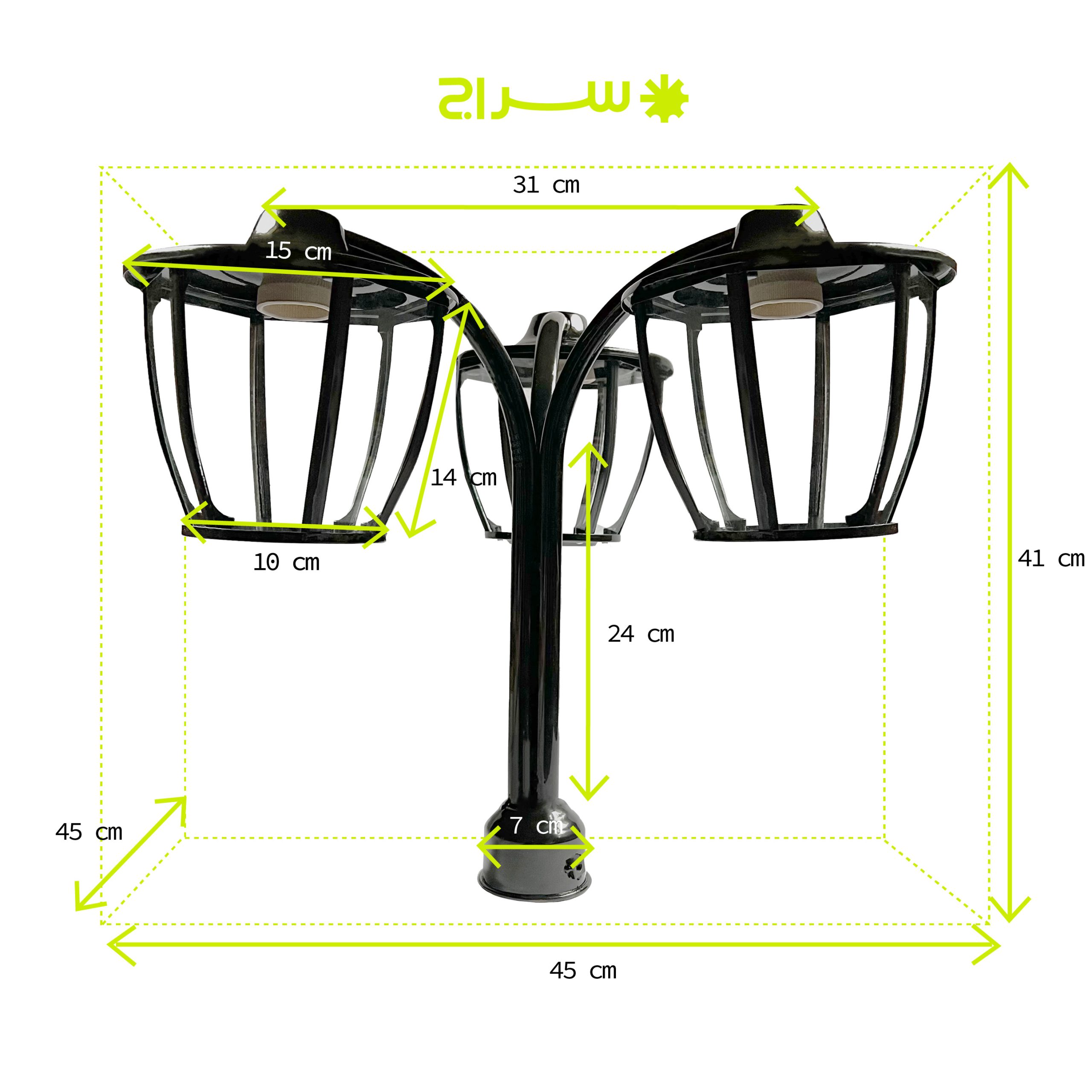 چراغ حیاطی و پارکی سرلوله سه‌شاخه فلزی مدل P-3JC