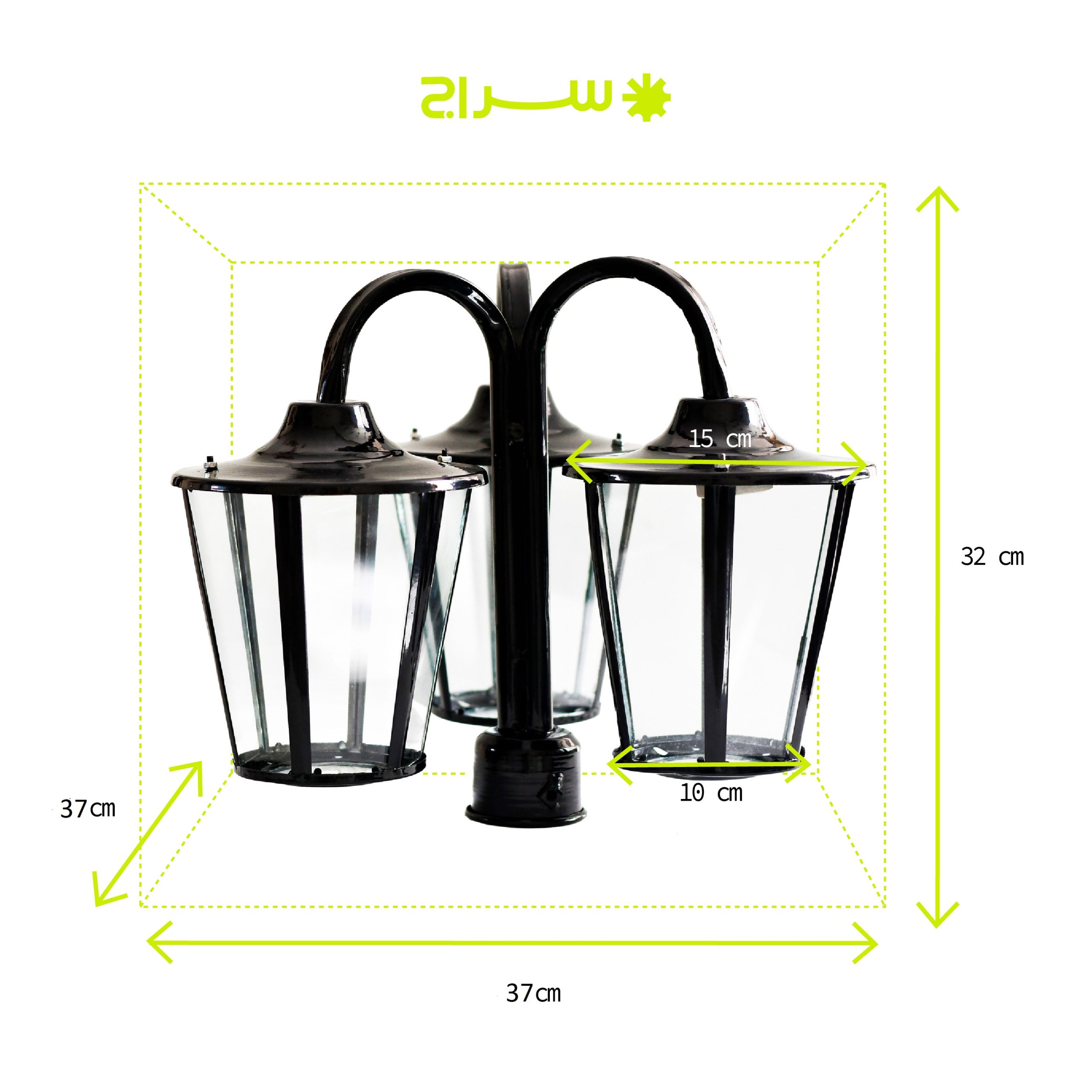 ویژگی های چراغ حیاطی سرلوله سه شاخه فلزی مدل P-3SH: